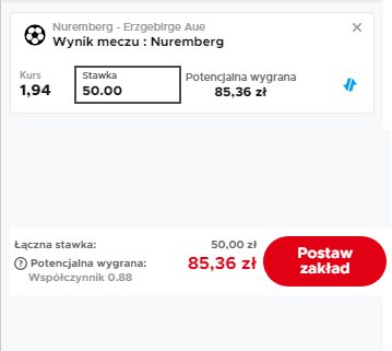 Zaklad bez ryzyka ze zwrotem na konto główne do 50PLN