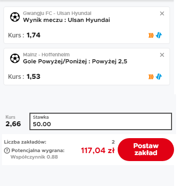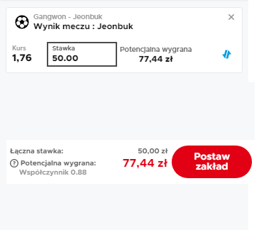Pojedynek w koreańskiej K-League pomiędzy Gangwonem a liderem Jeonbuk ma tylko jednego faworyta. Co prawda Gangwon chciałoby przerwać passę dwóch meczy bez zwycięstwa, ale Jeonbuk do tej pory nie stracił nawet punktu i raczej tę serię podtrzyma. Co prawda Gangwon jest drużyną własnego boiska, ale drużynie Hyundaia niestraszne są wyjazdy, na których nie przegrali od dosyć dawna (trzeba by sięgnąć aż do poprzedniego sezonu). Na korzyśc gości świadczy również bilans meczów bezpośrednich – Gangwon FC bardzo im leży, gdyż Jeonbuk wygrał z nimi 14 z 17 ostatnich spotkań. Korzystając z atrakcyjnego kursu (który szybko spada!) polecamy zaatakować w singlu gołą dwójkę, jako wygraną Jeonbuk Hyundai Motors.