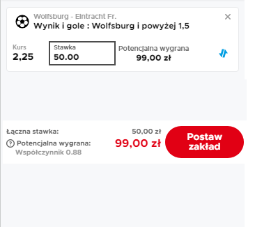 Typ: Wolfsburg wygra + Powyżej 1,5 bramki