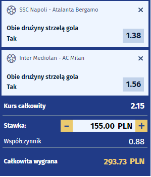 226 już edycja Derbi della Madonnina w Mediolanie, czyli pojedynek Interu z AC Milan. Po trzech kolejkach Inter zajmuje piąte miejsce w tabeli z siedmioma punktami (dwa zwycięstwa i remis). Milan zajmuje drugie miejsce w rankingu z dziewięcioma punktami i kompletem zwycięstw. Inter rozpoczął sezon od dwóch mocnych zwycięstw. Po wygranej 4:3 z Fiorentiną nastąpiło zwycięstwo 5:2 z Benevento, co zapewniło im świetny początek sezonu. Dynamika Interu została lekko zatrzymana, gdy w ostatniej rundzie dali radę tylko zremisować 1:1 z Lazio. Przedłużyło to jednak passę Interu do jedenastu meczów bez porażki. W dziewięciu z tych 11 meczów Inter strzelił ponad 2 gole. Milan natomiast do tego meczu przystępuje po wygranym 3:0 meczu ze Spezią, które dało mu trzy zwycięstwa z rzędu na rozpoczęcie sezonu – wszystkie z czystym kontem. Co więcej, Milan jest niepokonany w lidze od czerwca 2020 roku wygrywając 12 meczów i remisując 3. Co najważniejsze, Milan zachował w tych meczach jednak tylko sześć czystych kont. Dodatkowo Milan strzelił gole w każdym z ostatnich 23 meczów ligowych, co jest ich najdłuższą passą od 1973 roku. Derby rządzą się swoimi, logicznie często niepojętymi prawami i dlatego nie będziemy bawili się w typowanie faworyta. Zarówno zdobycie, jak i strata gola przez oba zespoły wydaje się być logicznym typem w oparciu o statystykę i tak gramy na przygotowanym dla Was dubelku.