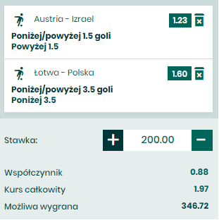 Kuponik na mecze w naszej „polskiej” grupie. Na początek bierzemy do analizy rewanż Austrii z Izraelem. Pamiętamy, jak w marcu cieszyliśmy się z falstartu Autriaków, którzy nie dość, że przegrali z nami na własnym terenie, to jeszcze zbłaznili się w Tel Avivie ulegając tam Izraelowi 2:4 po widowiskowym meczu. Obecnie większe szanse na opuszczenie grupy ma jednak z tej pary Austria, zaś dla Izraela może być to swoisty gwózdz do trumny, dlatego tutaj też spodziewamy się wyrównanego meczu i walki do końca. Szczególnie, że Izraelczycy zostali zdeklasowani dotychczas w naszej grupie tylko raz (na Narodowym…) zaś pozostałe punkty stracili głównie przez własne błędy w grze obronnej i jeżeli tutaj uda się ich uniknąć mogą jeszcze powalczyć (a dla nas byłoby git). Co ciekawe, w meczach obu zespołów pada naprawdę mega dużo bramek, można zaryzykować stwierdzenie, że 75% sumy ich spotkań ogląda trzecią bramkę. We wspominanym już pierwszym meczu padło bramek sześć, jednak do wyższego overa brakuje tu większej liczby bramek w meczach Austrii u siebie, gdzie tracą bardzo mało goli. Pierwszy mecz, ogólna średnia bramek oraz doskonała forma Zahaviego, pod którego ustawiona jest gra ofensywy Izraela, pozwoli spokojnie wypełnić wybrany przez nas zakład. Gramy, że w tym meczu zobaczymy przynajmniej dwa gole.