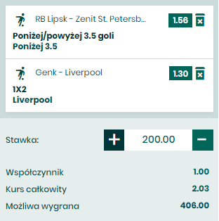A w drugim meczu ponownie nudna wygrana faworyta. Genk podejmuje Liverpool i pewnie będzie chciał udowodnić, że wyszarpany remis z Napoli to nie przypadek, ale trzeba tutaj przyjąć na chłodno pewne fakty – w grze wyjazdowej Liverpool to nie Napoli, a Sane to nie Milik. Genk oprócz wspomnianego remisu ma także na koncie dotkliwą porażkę z Salzburgiem i trudno im będzie nawet o 3 miejsce i kontynuowanie gry w Lidze Europy, The Reds dość niespodziewanie i w naszej ocenie zbyt łatwo ulegli Napoli na wyjezdzie, a potem po dreszczowcu pokonali Salzburg 4:3. Te wyniki świadczą o tym, że priorytetem Liverpoolu i Juergena Kloppa na ten sezon jest wygranie Premier League, gdzie rozsiedli się w fotelu lidera i tak sbie tam wygodnie siedzą, zaś Ligę Mistrzów na 100% poważnie zamierzają traktować dopiero od fazy pucharowej. Dodatkową siłą dla drużyny z Anfield ma być powrót Mo Salaha, o którym napisać, że wnosi do gry zespołu sporo wartości dodanej, to jak nic nie napisać. Trzeba też zważyć na fakt, że Genk ma problemy nawet w lidze belgijskiej, gdzie spisuje się poniżej oczekiwań, a remis z Napoli był wynikiem indolencji Arka Milika (oddajmy mu, że notuje progres w skuteczności) i kilkukrotnego obicia aluminium niż dobrej gry Racingu Genk. Gramy na wygrana gości.
