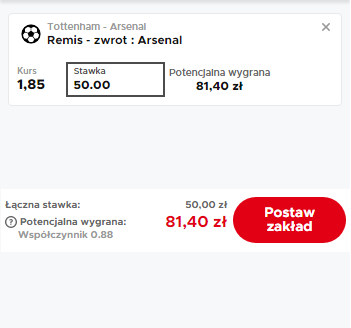 Zaklad bez ryzyka bez obrotu (zwrot na konto główne) 50PLN