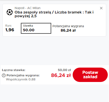 Pojedynek o być albo nie być Milanu w europejskich pucharach łatwy nie jest, gdyż wyjazd do Neapolu nie jest łatwy dla żadnej drużyny na świecie. Jedno jest pewne – mecz na San Paolo nie będzie nudny! Oba zespoły po wznowieniu rozgrywek są w bardzo wysokiej formie. Ostatnie zwycięstwo gospodarzy nad Genuą 2:1 było czwartym w ostatnich pięciu meczach i pozwoliło na dogonienie w tabeli Romy. Milan zaś ostatnio gra to, na co kibice tego zespołu czekają od kilku ładnych lat. Ostatnie 5 meczów to 13 zdobytych punktów (4 zwycięstwa i remis), zaś styl, w jakim powrócili z zaświatów w meczu z Juventusem, gdzie od 0:2 zrobiło się 4:2 sprawił, że Rossoneri są znowu na ustach całej piłkarskiej Europy. Napoli jako triumfator Coppa Italia jest już pewne udziału w Lidze Europy, zaś Milan ta kwalifikację musi sobie wywalczyć poprzez tabelę ligową. Wynik tego meczu stanowi kwestię otwartą, także lecimy w fajny kombinowany zakład, którego kurs w naszej ocenie jest mega przeszacowany. Milan w swoich ostatnich 5 grach strzelił 15 bramek. Trzy ich kolejne mecze to przynajmniej 3 bramki w meczu. Napoli zanotował trzy OV 2,5 w ostatnich czterech spotkaniach. Oba zespoły zanotowały trzy znaki BTTS w pięciu ostatnich grach ogólnie, dla Napoli u siebie po wznowieniu bramki padały dla obu drużyn w 3 na 4 mecze, a dla Milanu na wyjeździe w dwóch z ostatnich trzech przypadków. Stoimy na stanowisku, że w tym meczu padną przynajmniej trzy bramki, a tym łupem podzielą się oba zespoły. Mocny singiel!