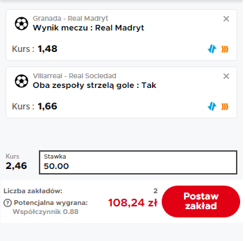Udział w europejskich pucharach dla Villareal w przyszłym sezonie jest już niemal przesądzony, ale wygrana z jednym z bezpośrednich konkurentów, Realem Sociedad dała by im bardzo dużo spokoju. Sociedad za to, po ostatniej porażce z Granadą u siebie musi walczyć i trzy punkty do kwalifikacji europejskiej są im tutaj niemal tak bardzo potrzebne jak tlen do przeżycia. Idziemy jednak w stronę innego zakładu. Uwagę zwraca fakt, że oba zespoły mają o co walczyć, a więc nikt nie będzie grał tu na przetrwanie i oba teamy będą dążyć do zdobycia gola. Ostatnie 3/5 meczów Villareal to bramka zdobyta i stracona, dla Sociedad to nawet 4/5 ostatnich spotkań. Dla Villareal u siebie i Sociedad na wyjeździe to ten sam bilans 3/5 spotkań. BTTS zielenił się w pierwszym spotkaniu, gdzie padł rezultat 2:1 dla dzisiejszych gospodarzy. Swoista bitwa o Europę, w której oba zespoły powinny uraczyć swoich kibiców radością po zdobytej bramce. Gramy, że oba zespoły zarówno zdobędą, jak i stracą gola.