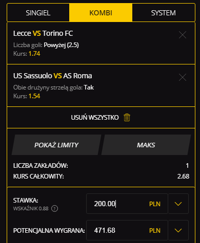 Coś od siebie powinny dorzucić też Sassuolo I Roma. Gospodarze w 9 z ostatnich 10 meczów u siebie pokryli “obie strzelą”. Dobrze atakują, kiepsko bronią I efekt jest taki, a nie inny. Roma na wyjeździe sporo strzela – 18 goli w 10 meczach. Ostatni mecz pomiędzy tymi drużynami zakończył się wygraną ekipy ze stolicy 4:2 I ani trochę nie zdziwi nas podobny rezultat w najbliższą sobotę.