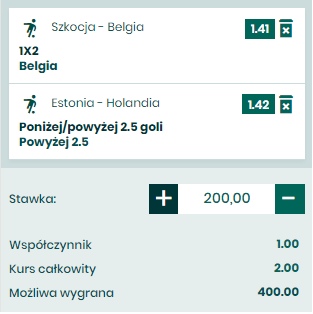 W piątkowym meczu, po porażce 1:2 z Rosjanami (i naszym udanym becie) podejmują w rewanżu Belgów, którzy dopełnili obowiązku i wygrali 4:0 z San Marino na wyjezdzie po słabym meczu (ich trener, w przeciwieństwie do niektórych, umiał przyznać się do błędu). Karty w tej grupie wyglądają na rozdane na półmetku – Belgia przed Rosją. Szkocja przegrała dwa ostatnie mecze, a jednym z nich był mecz właśnie z Belgią w Brukseli 0:3. Belgowie do meczu przystępują z kompletem punktów, jedną straconą bramką i nic nie wskazuje aby mieli pierwsze punktu stracić na Hampden. Rozważaliśmy w tym meczu OV 2,5, który byłby w pełni uzasadniony statystycznie, ale jednak ten mecz może stanowić wyjątek potwierdzający regułę, gdyż Szkoci, pomimo meczu u siebie, raczej nie zdecydują się na huraganowe ataki na bramkę Belgów. Szkoci grają o przedłużenie matematycznych szans na awans na Euro 2020, jednak Belgowie to dla nich obecnie zdecydowanie zbyt wysokie progi. Gramy zwycięstwo multikulturowej reprezentacji Belgii.