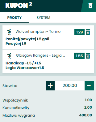 Ta beznadziejna, brzydko grająca Legia… Jak oni śmią brzydko wygrywać, gdy inni, jak Piast czy Lechia odpadają po heroicznych bojach? Zostawmy ironię – Legia przez buków jest tutaj skazywana na pożarcie – w naszej ocenie dość niesłusznie. Na Łazienkowskiej Legia pokazała, że wcale nie jest zespołem słabszym, a wręcz przeciwnie – wykreowała sobie więcej sytuacji na zdobycie bramki, tradycyjnie Legionistom zabrakło jedynie skuteczności pod bramką rywali. Dodajmy do tego tradycyjną grę Legii na zero z tyłu w pucharze i bardzo dobrą postawe bloku defensywnego Majecki – Stolarski, Jędrzejczyk, Lewczuk, Rocha. Rangersi przystąpią do tego meczu poważnie osłabieni – wątpliwy jest występ liderów formacji ofensywnej Morelosa (negocjuje z Milanem, na stole leży za duża kasa żeby ryzykować kontuzję) oraz Ojo (nie wiadomo czy wóci po urazie). UEFA zadecydowała dodatkowo o zamknięciu trybuny, na której siedzą najwięksi ultras Glasgow Rangers – Union Bears, którzy dają Rangersom mniej więcej tyle, co Legii fanatyczny doping Żylety. Bezbramkowy remis w pierwszym spotkaniu sprawia, że wszystko jest tu otwarte, jednak bramka dla jednego z zespołów postawi drugi pod ścianą. W naszym odczuciu mecz będzie pełen emocji i na bramkowy remis (czutka: 1:1), a my bezpiecznie zagramy bardzo atrakcyjny handi +1,5 na Legię – jednobramkowa porażka polskiego zepsołu nam da zwycięstwo na bukiem.