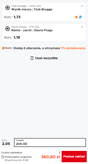 Rewanż Club Brugge z LASK Linz w drugim meczu fazy play-off emininacji Ligi Mistrzów. Brugge będzie chciał obronić u siebie zdobytą na wyjedzie zaliczkę 1:0 i awansować do fazy grupowej. LASK nie stanowi słabego rywala – wicemistrza Austrii stać było na wyrzucenie z rozgrywek i zesłanie do Ligi Europy tak rozpoznawalnej firmy jak Basel. Club Brugge przebił jednak to osiągnięcie odpalając Dynamo Kijów. Gdyby mecz odbywał się w Linzu, a Brugge miał zaliczkę 1:0 zdobytą u siebie, mogłoby być różnie, jednak w tej sytuacji Belgowie raczej nie dadzą sobie wyrwać z rąk awansu. Club Brugge pamiętamy z bardzo dobrych występów w ubiegłorocznej Lidze Mistrzów, gdzie skazywani na pożarcie przed rozpoczęciem rozgrywek, wywalczyli sobie przepustkę do Ligi Europy. LASK były pierwszą austriacką drużyną od sezonu 2012/13 w Lidze Mistrzów, kiedy to pogrywała tam Austria Wiedeń. Do Ligi Mistrzów nie dostaje się nawet austriacki hegemon Salzburg, zaś drużyny belgijskie grają tam niemal co roku, co może dawać pewien obraz porównujący siłę obu lig. Club Brugge jest dużo bardziej doświadczoną na arenie europejskiej drużyną, zaś LASK Linz dopiero puka do grona drużyn rozpoznawalnych w Europie. Wszystkie te argumenty przemawiają jednoznacznie za Belgami, którzy będą chcieli przypeiczętować swoje zwycięstwo.