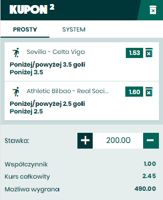 W trzecie kolejce hiszpańskiej La Liga Sevilla podejmuje Celtę Vigo. Gospodarze grają pierwszy mecz u siebie, po dwóch wyjazdowych zwycięstwach z Granadą i Espanyolem. Celta Vigo, po dojść frajerskiej porażce u siebie z Realem na inaugurację wygrała u siebie z Valencią 1:0. Celta Vigo kojarzy się z zespołem słabo grającym na wyjazdach, a już na pewno tradycyjnie oddają oni plecy na stadionie Sevilli. Dość długo zastanawialiśmy się, czy grać 1 na Sevillę czy też UN 3,5 po atrakcyjnym kursie. Padło na drugie z prostej przyczyny – bardziej lub mniej przypadkowy gol na początku spotkania dla Celty pozwoli im się zamurować i wówczas Sevilli może być niezmiernie trudno o trzy punkty. Inaczej ma się UN 3,5 – Sevilla nie straciła jeszcze bramki i strzela 1,5 bramki na mecz. Celta Strzela bramkę na mecz i traci 1,5. Wyciągając średnią dla obu drużyn z czterech meczów wychodzi 2 bramki na mecz. Co ciekawe, Sevilla zwyczajowo wygrywa z Celtą Vigo 2:1. O ile tutaj jest szansa na trzecią bramkę tak na przełamanie statystyki, o czwartą będzie już niezwykle trudno i taki zakład wrzucamy do dzisiejszego AKO,