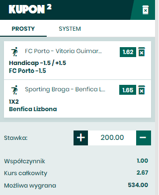 W innym zestawieniu z tej ligi Braga podejmuje Benficę. Gospodarze pod wodzą znanego i (nie)lubianego Ricardo Sa Pintoradzą sobie dobrze, szczególnie w Lidze Europy, z której wyrzucili już takie firmy jak Broendby albo Spartak Moskwa. W lidze w kratkę – zwycięstwo, remis i porażka, ale ta ostatnia ze Sportingiem na wyjezdzie także rozgrzeszamy. Ten ostatni Benfica, dzisiejsi goście pod wodzą kolegi z reprezentacji RSP – Sergio Coneceicao, rozbili w inauguracyjnym meczu 5:0, tak samo rozprawili się z Pacos Ferreira. Udany był również wyjazd do Belenenses, ale nie udało się już z Porto, gdzie przegrali w prestiżiowym meczu 0:2. Braga jest po wspomnianym już ciężkim czwartkowym meczu wyjazdowym ze Spartakiem, także ten fakt raczej nie będzie przemawiał za ich zwycięstwem z Benfiką. Zmęczenie materiału może być tu aż nazbyt widoczne i może przytłumić ofensywny potencjał gospodarzy, dodatkowo Benfika będzie chciała nazbierać punktów zanim zaczną występy w europejskich pucharach.